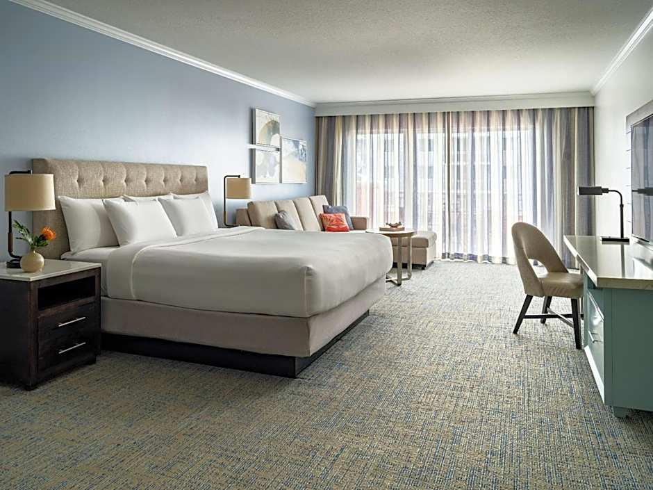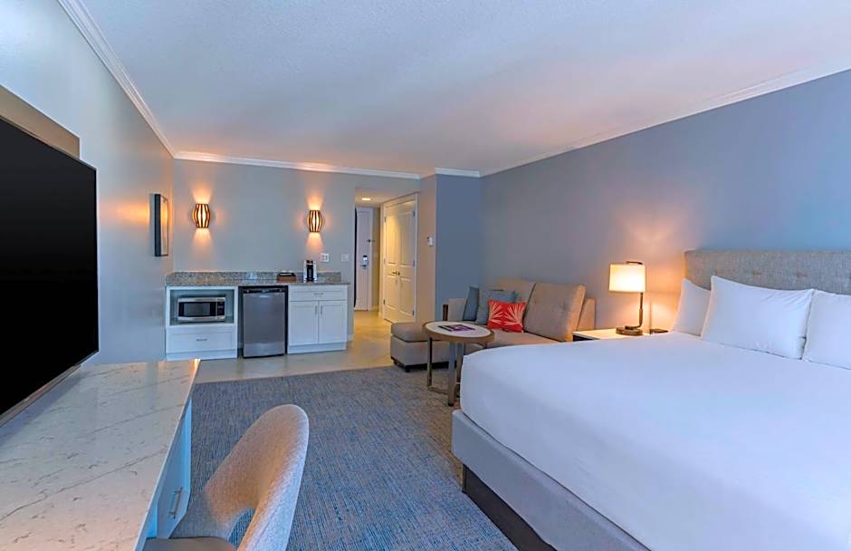 This premium guestroom includes a kitchenette complete with a microwave, refrigerator, and coffee-making facilities. A 65-inch flat-screen TV and private bathroom are provided.